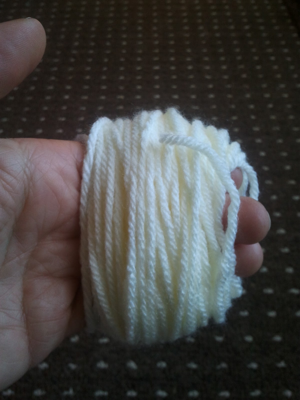 3. Then you ease it off your hand onto a short length of the same colour wool.